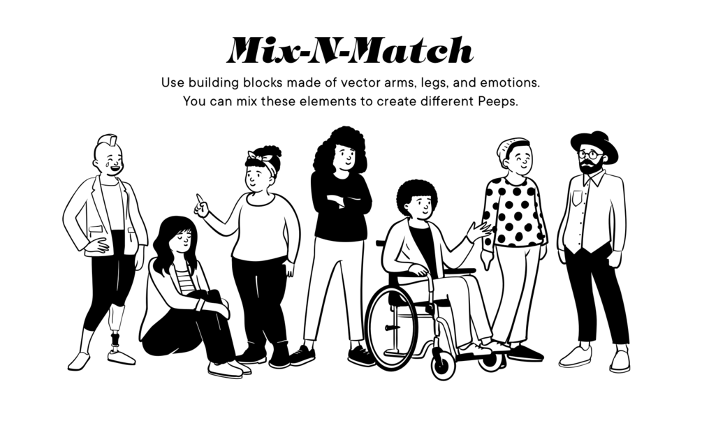 Open Peeps is a hand-drawn illustration library to create scenes of people. You can use them in product illustration, marketing, comics, product states, user flows, personas, storyboarding, or whatever you want!